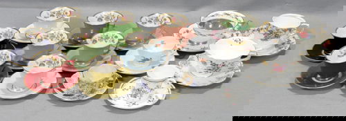 PORCELAIN TEA CUP AND SAUCER GROUPING, LOT OF 21All having variety of colors.