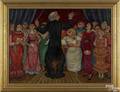 CHINESE CRACKLE GLAZE TABLE LAMP, H 32", WITH A FIGURAL CARVED FINIAL:Urn form ceramic vase with ivory crackle glaze overall, surmounted by a carved squirrel-form finial, possibly agate (see additional photo).