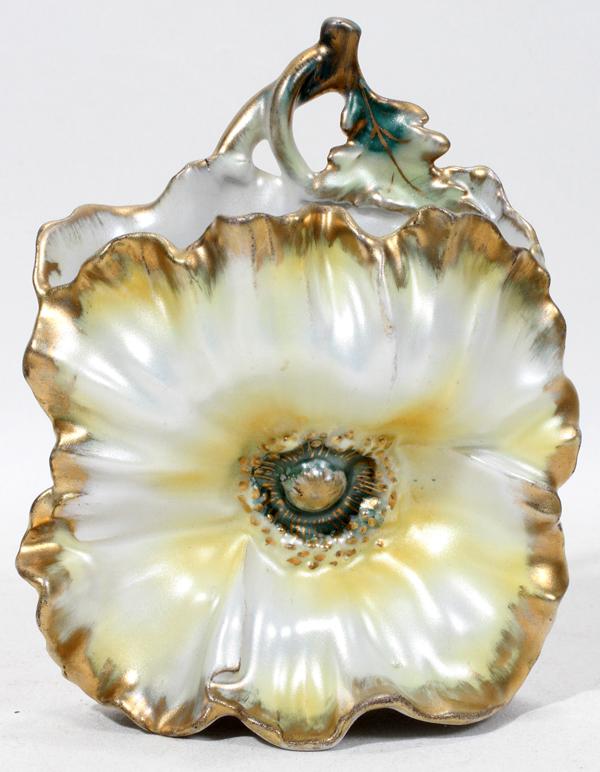 ROYAL BAYREUTH PORCELAIN RED POPPY HAT PIN HOLDER, C 1900, H 4":Footed, marked blue; actual size: 4 1/4". Read more…