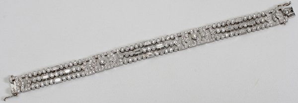 DIAMOND BRACELET:entire bracelet is inset with diamonds, both round and emerald cuts.