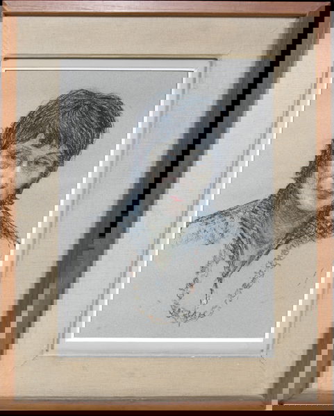 MANES LICHTENBERG, CHARCOAL PORTRAIT 20" X 14": Exhibited widely: American Watercolor Society NY, Philadelphia Academy of Fine Arts, Salon d'Automne Paris, National Academy of Design NY, Los Angeles County Museum, Museum of Modern Art Paris, Maxwell Galleries San Francisco etc Brochure in consignor f