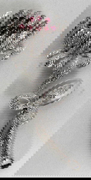 0. 97 CT DIAMOND, 0.56 CT RUBY & 14 KT WHITE GOLD PIN: