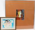 Mid-century Modern Tripod "Grasshopper" Floor Lamp and Two Cabinets on Metal Stands, conical shade on angular metal rod on tripod base, (shade detached), ht. 50; Read more…