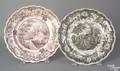 Two Snuff Bottles with Enameled Decoration, China, a milky white Peking glass snuff, flattened globular shape with waisted neck and round mouth, resting on a raised oval foot, enameled with a bird-and-flower design in a double ring on front and back, a yellow band with floral and foliated scroll design to the sides, the domed stopper, light green-gray stone with white speckles, "Gu Yue Xuan" mark on base; and a double gourd-shape snuff enameled with a continuous scene with four boys, domed red glass stopper, (missing spoon), three-character mark on base, ht. to 3 1/4, wd. to 2 1/4 in.