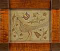 19th century one side having painted panels of courting couples, floral filled baskets and floral trophies, the reverse painted with architectural ruins, and the pediment with putto. Height of each 99 1/2 x width 45 3/4 inches. There are only two side moldings with hinges, both right sides. The left sides are missing. There are minor losses of paint overall, consistent with wear and tear expected with age. It is two pairs of doors, 4 panels, and two pediments. Each door: H 78 3/4 x W 18 3/4 inches Pediment: H 21 x W 46 inches