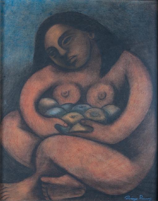 Diego Rivera (Mexico, 1886-1957) framed under plexiglass pastel drawing, signed to lower right "Diego Rivera" and having framed height of 24-1/4" and width of 20-1/4". Has a sight image height of 19-1/2" with width of 15-1/2". Complete with invoice from original purchase in 1942 signed by Diego Rivera to Jack Beny. In overall good condition, all measurements are approximate. Provenance: from the estate of a South Carolina collector, who wishes to remain anonymous. It is our recommendation that all pieces must be examined in person by perspective clients or a dealer they have asked to give them a condition report. This is consistent with our terms of sale that all goods are sold as is and all sales are final. For more information about this artist, please refer to lot #75 in this catalog.