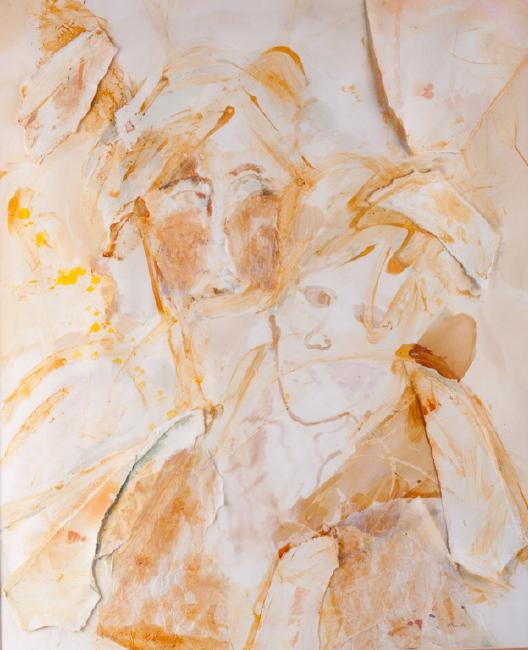 Lorraine Fink (American, ? - ) Mixed media abstract, framed and double matted under glass. Signed by the artist to the lower right hand corner. Frame measures 33" in height by 28" in width with the sight image measuring 25-1/2" in height by 20-1/2" in width. All measurements are approximate. Lorraine Fink (?- ) is a graduate of Old Dominion University whose work has been exhibited at the Virginia Museum and the Hermitage Museum.