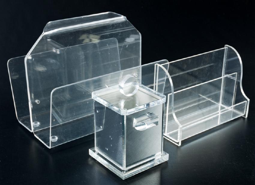 Three (3) items to include one (1) magazine rack, one (1) counter top brochure holder, & one (1) square beauty organizer with lid and having a mirrored exterior; largest magazine rack measures approximately 12-3/4” high, 15-3/4” wide and 11” in depth.