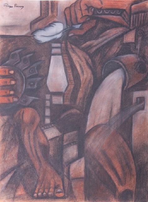 Diego Rivera (Mexico, 1886-1957) unframed chalk drawing titled "Mural Study" depicting an industrial and organic amalgamation, possibly as a study for the Detroit Industry Mural (Detroit Institute of Arts, 1932-1933) , signed "Diego Rivera" to the upper left hand corner and measuring approximately 24" in height by 18" in width. Complete with original bill of sale to Jack Benny (misspelled 'Beny' on the form) dated January 7, 1947 and signed by Diego Rivera. For more information about this artist please refer to lot #25 in this catalog. It is our recommendation that all pieces be examined in person either by perspective clients or a dealer the client has asked to give them a condition report. This is consistent with our terms of sale that all goods are sold as is and all sales are final.