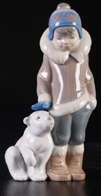 Lladro “Eskimo Boy with Pet”, Ref #5238, first issued in 1984; measures approximately 5-1/2” tall. Makers marks to bottom.