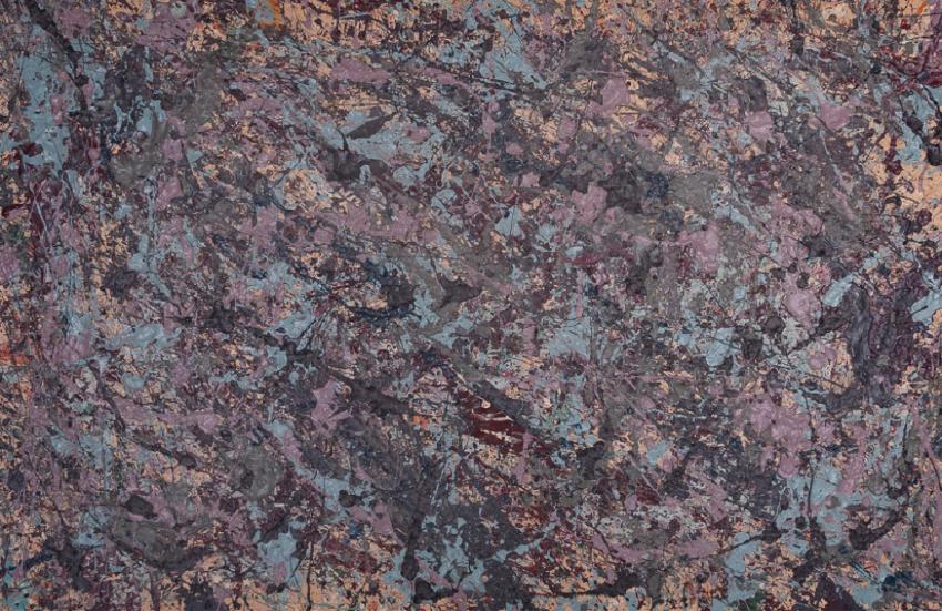 Abstract Expressionist oil on canvas drip painting signed "M. Stewart" and dated "April 30, 1974" to verso. Unframed canvas measures approximately 25-1/2" in height by 39-1/2" in width. In overall good condition consistent with age.