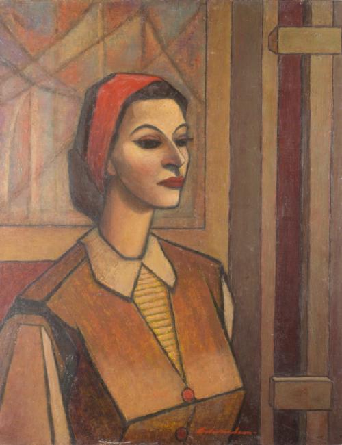 Larry Edwardson (American, 1904-1995) oil on board depicting a portrait of a woman in three-quarter profile, titled "Portrait of Sally Osborne" and signed "Larry Edwardson" to verso. Signed "Edwardson" to the lower right hand side of the image. Board measures 30" in height by 24" in width. All measurements are approximate. In overall good condition consistent with age. For more information about this artist, please refer to lot #8 in this catalog.