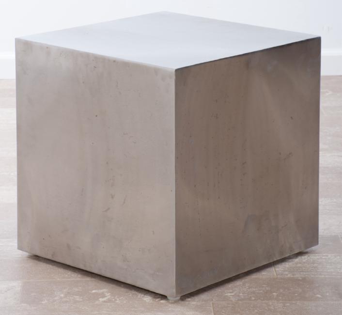 Chiasso Exclusive industrial strength stainless steel cube, a unique side table one moment, a modern occasional seat the next; measures approximately 18-1/2” high, 18” in width and 18” in depth. Marked with label to bottom.