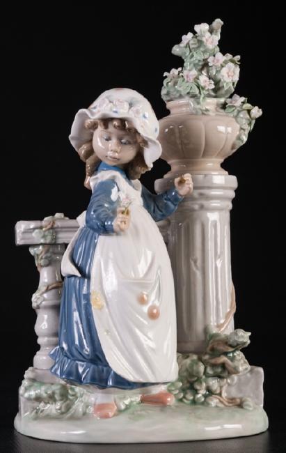 Lladro “Glorious Spring”, Ref #5284, first issued in 1985 and retired in 2007; measures approximately 11” tall. Makers marks to bottom. Parasol and bird are absent from figure.