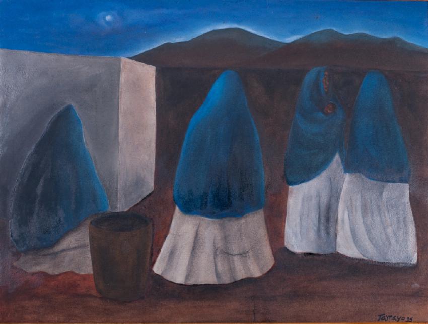Rufino Tamayo (Mexican, 1899-1991) guoache on paper titled "Mujeres de Noche" (Women of Night) framed under plexiglass. Signed and dated "Tamayo '35" to the lower right hand corner. Gilt frame measures 20" in height by 24" in width with the sight image measuring 11-1/2" in height by 15-1/2" in width. All measurements are approximate. Comes complete with a Certificate of Authenticity from an independent appraiser who is also the artist's Godson. Rufino Tamayo(Mexican, 1899-1991) was a Mexican painter of Zapotec heritage, born in Oaxaca de Juarez, Mexico. Following the death of his parents, he moved to Mexico City and enrolled in the Escuela Nacional de Artes Plasticas at San Carlos to study art in 1917 where he was influenced by Cubism, Impressionism and Fauvism. He integrated the forms and tones of pre-Columbian ceramics into his early still lives and portraits of Mexican men and women. The first exhibition of Tamayo's work in the United States was held at the Weyhe Gallery, New York, in 1926. In 1943 Tamayo painted his first mural in the United States at the Hillyer Art Library at Smith College. Tamayo and his wife Olga moved to Paris in 1949, and the French government named him Chevalier and Officier de la Légion d'Honneur in 1956 and 1969.,The Rufino Tamayo Museum of International Contemporary Art opened in Mexico in 1981, and it displays many of the artist's works, as well as paintings, sculpture and drawings from his private collection. Rufino Tamayo died in