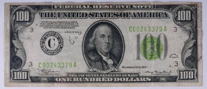 Federal Reserve Bank of Richmond $100 note series 1934, serial number E03080573A. Read more…