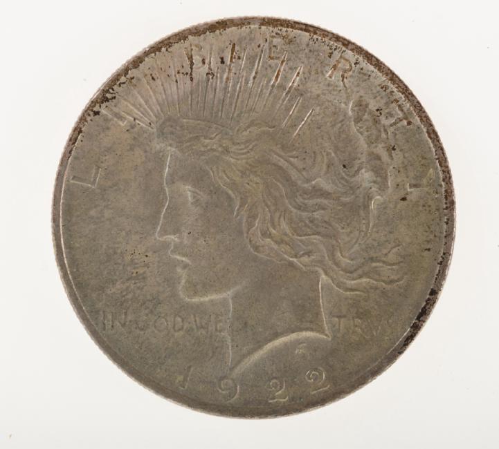 U.S. 1922 Silver Peace Dollar F-12 Grading levels are unofficial. Read more…
