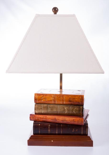 Wildwood of Rocky Mount, N. C. faux stacked books table lamp with a hinged top opening to an interior compartment; measures approximately 24-1/2” high, 11-1/2” wide and 10-1/2” in depth. Marked to socket and socket knob. In good working condition at the time of cataloging.