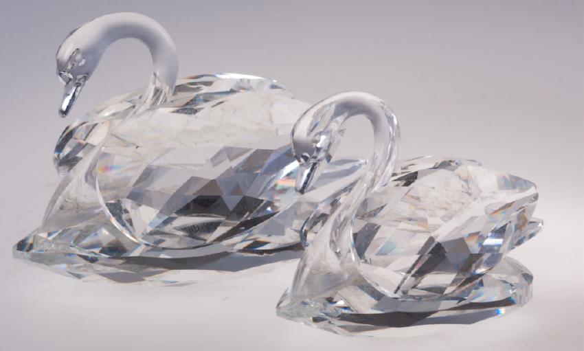 SWAROVSKI CRYSTAL SWANS, PAIR, H 2":two crystal swans with faceted body's. Read more…