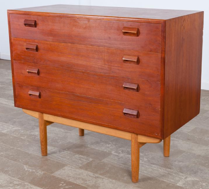 Borge Mogensen Danish chest of drawers with a teak top on an oak base, unsigned; measures approximately 34-1/8” high, 39-3/8” wide and 18-1/8” in depth. With “Made in Denmark” stamped to the back.