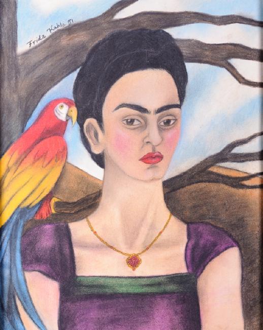 Frida Kahlo (Mexico, 1907 - 1954) framed mixed media on paper drawing depicting Frida Kahlo's portrait and titled "Autorretrato" and signed to upper left "Frida Kahlo 51". Has a framed height of 23" with width of 19", and has a sight image height of 19-5/8" with width of 15-5/8". Comes complete with two (2) letters of provenance. In overall good condition, all measurements are approximate.It is our recommendation that all pieces must be examined in person by perspective clients or a dealer they have asked to give them a condition report. This is consistent with our terms of sale that all goods are sold as is and all sales are final.Magdalena Carmen Frida Calderon (Frida Kahlo) was born on July 6, 1907 in Mexico City, the daughter of a German Jewish father & a Mexican mother. She lived her adult life in the shadow of her husband, famed muralist & Mexican national hero Diego Rivera whom she had known since childhood. They embarked on their violent courtship following his divorce from his second wife. The were both temperamental & noisy Communists, & she proudly proclaimed that she had never been expelled from the communist party, as Diego was. He was obese, unfaithful, & psychologically abusive, yet Frida retaliated with her own bisexual affairs. Kahlo once called Rivera "the other accident" in her life, and she lamented her inability to possess him completely. A grisly accident occurred when she was a teenager: a streetcar hit the bus in which she was riding and dro Read more…