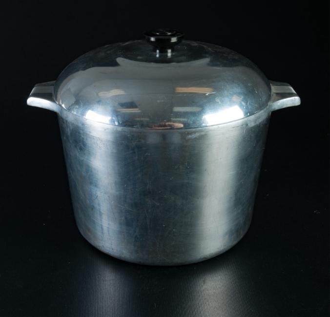 A partial set of cookware including three covered stock pots and two covered saucepans. PROVENANCE From the Estate of Greta Garbo Largest, height, 7 inches; Read more…