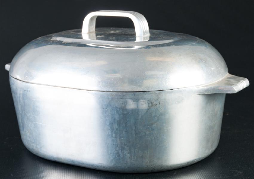 Wagner Ware Sidney-O-Magnalite 4738P Dutch oven with insert; measures approximately 10” high and 12-3/4” wide from handle to handle. Marked to bottom. Read more…
