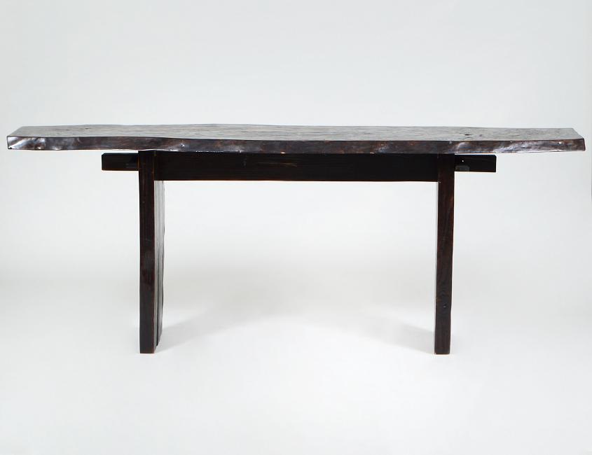 Second Half of the 20th Century. Probably elm wood, the asymmetrical top raised on two planks serving as trestles. Height 30 ½”. Width 6’ 6”. Depth 19 ½”. (Cond: good) (500/700)