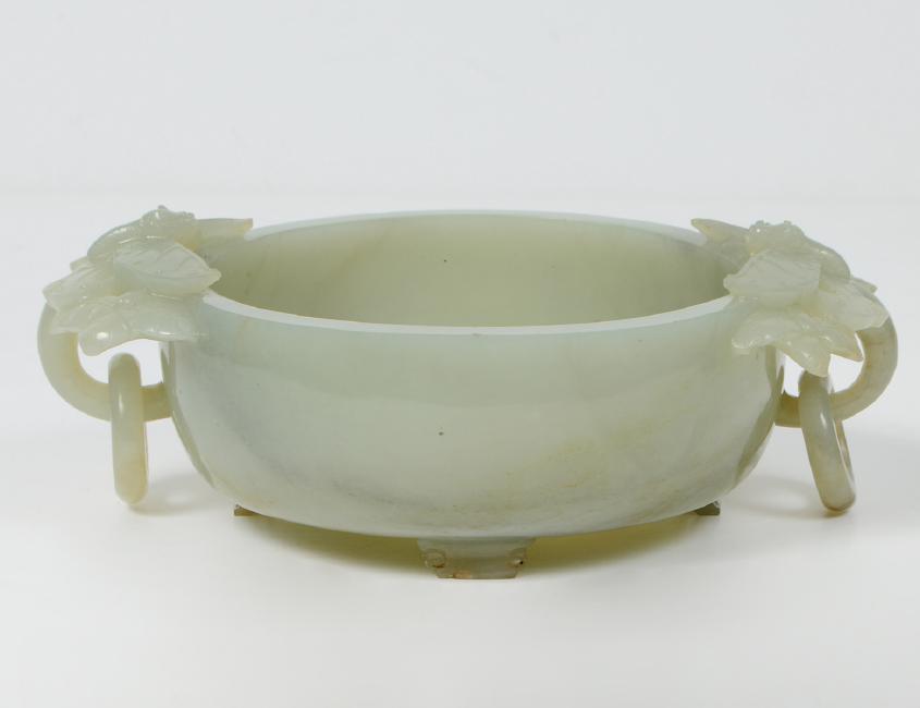 With loose ring and dragon-fly form double handles. Height 2 ¼”. Width across handles 6 ½”. (Cond: good) (6000/8000)