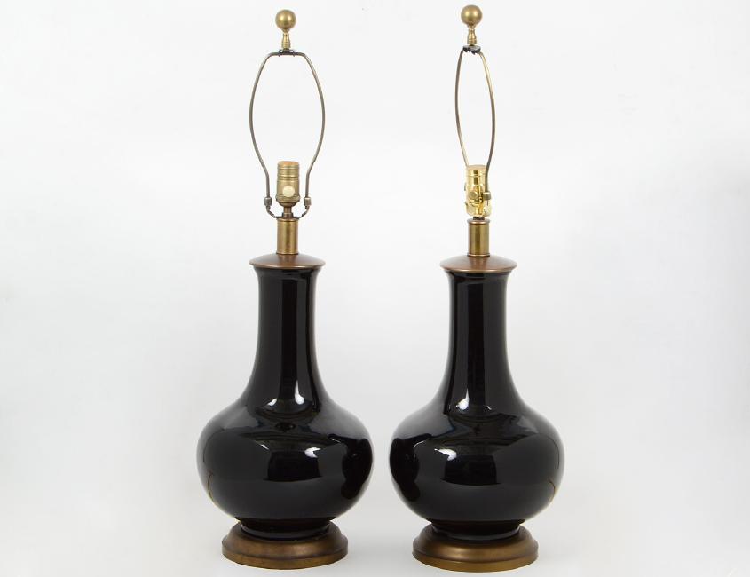 Modern. Each with a overall black glaze. Height 15 ½”, overall 24”. (Cond: good) (150/200)