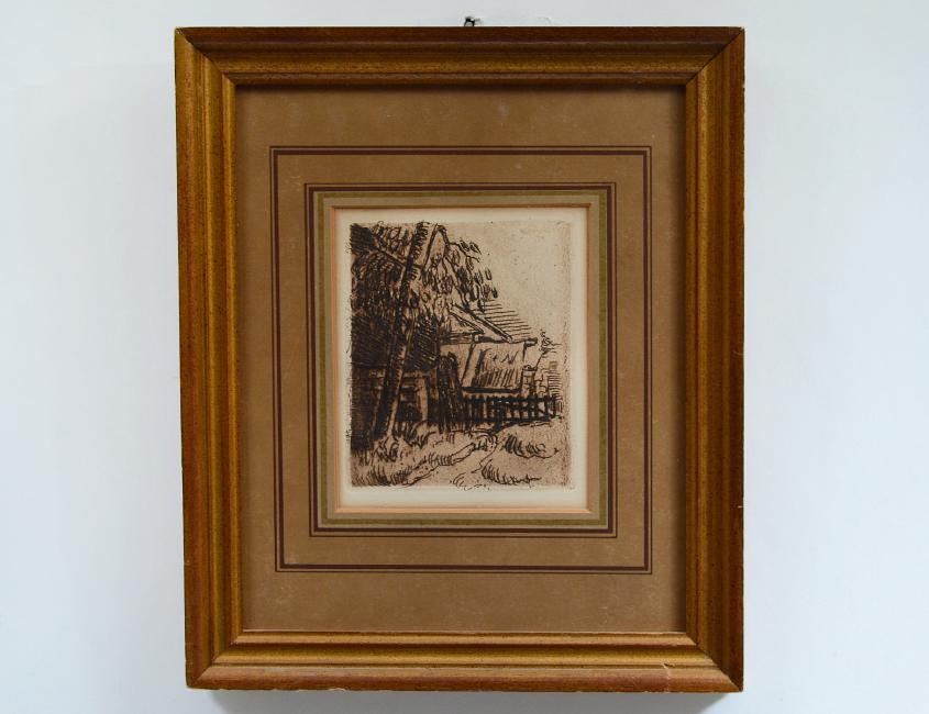 “Paysage a Auvers”. Verso bears authentication from the Collectors Guild, Ltd. New York and dated 1873. Etching. Measuring 5 1/4" by 4 1/4". Framed under glass. (Cond: good) (250/300)