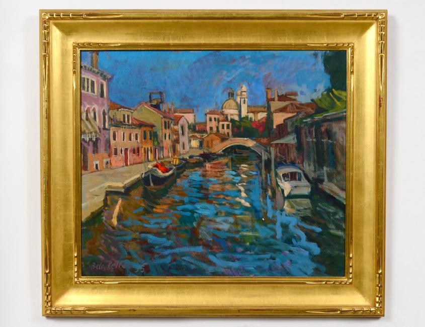 “Venetian Canal”. Signed l/l. Oil on Canvas. Measuring 24” by 28”, framed 34” by 36”. (Cond: good) (300/400)