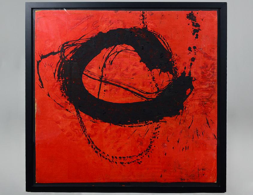 “Untitled”. No visible signature. Pigmentation on Cork. Measuring 48” by 48”. Framed under Plexiglas. (Cond: good) (800/1000) Provenance: Jamali, Art and Peace Inc. Winter Park, FL