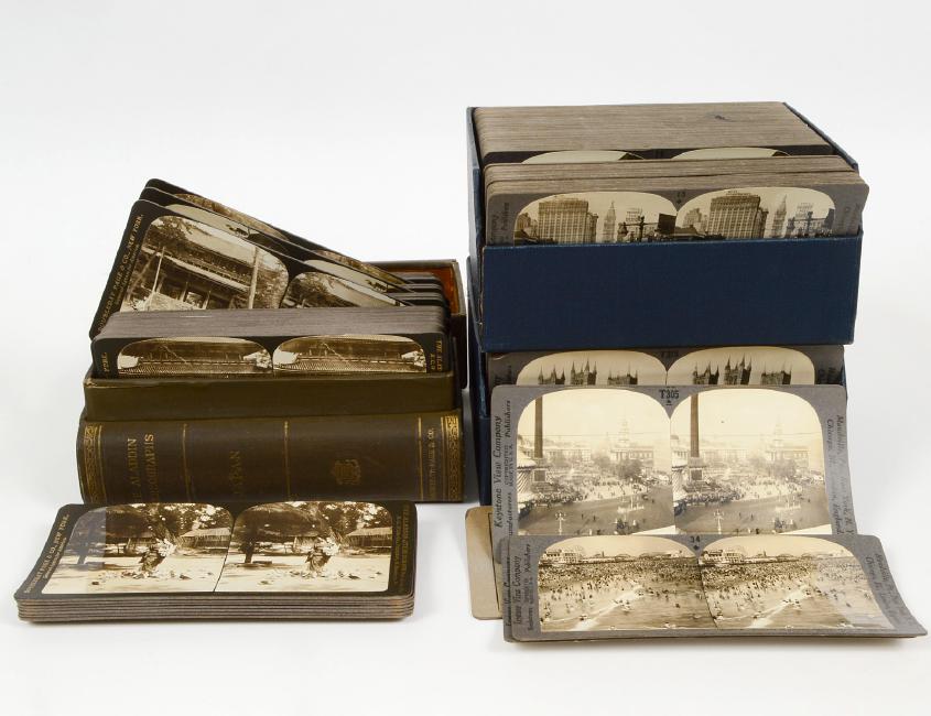 Comprising views of both Aladdin and Keystone View sepia toned views of Japan, The Americas and European Cities. (Cond: some cards with tattered edges, two boxes without lids, incomplete) (200/300)