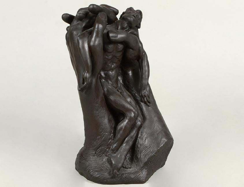 ‘Pieta’. Late 20th Century. With two impressed seals, Plazzotta 7/9, Fonderia Mariani. Patinated Bronze. Height 23 ½”. Cf. Initially a student of both architecture and sculpture Plazzotta chose to work with bronze as a medium for his artistic sculptures. He studied at the Accademia di Brera in Milan under the watchful tuition of Giacomo Manzù, amongst others in Italy. (3500/4500) Provenance: Leslie Hindman, Sept. 2009.