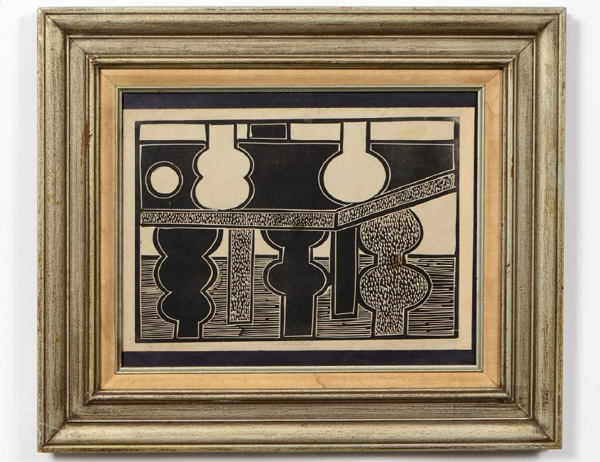 Untitled. Signed l/l. Indistinctly titled lower center. Black and White Print. Measuring 12” by 171/2”. Framed under Glass. (Cond: slight fading) (100/150)