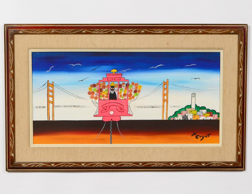 “San Francisco Street Car”. Signed l/r. Verso dated 1970. Oil on Canvas. Measuring 14” by 29 1/2”. Framed. (Cond: good) (300/500)