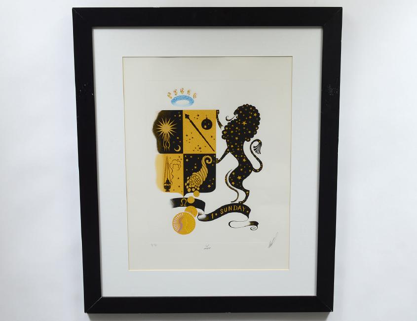 “Leo”. Signed in pencil l/r and numbered 28/35. Artist’s Proof Serigraph on Embossed Paper. Measuring 19” by 14”. Framed under glass. (Cond: good) (150/200)
