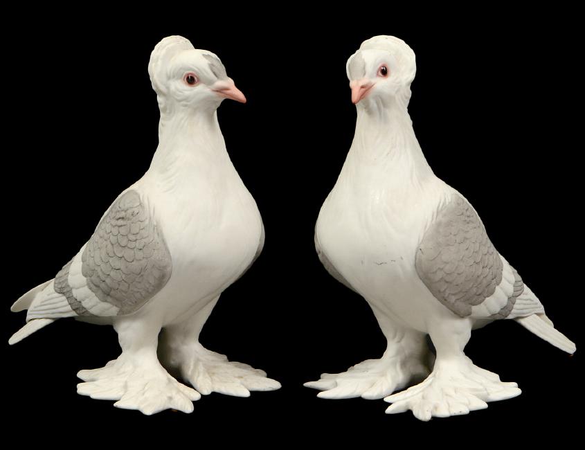 Pair of Boehm porcelain Tumbler pigeons, 8 1/4" h. Read more…