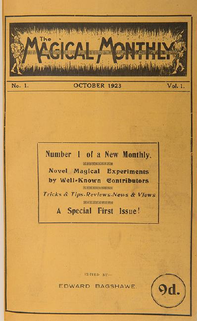 Magical Monthly. Edward Bagshawe. V1 N1 (Oct. 1923) – V3 N12 (Sep. 1926). Complete file in two red volumes. Alfredson/Daily 4320. With tipped-in sleeve on flyleaf holding the pamphlet “Syko: Edward Bagshawe’s New Mental Feature” (ca. 1929). Some pages lightly bent; near fine.