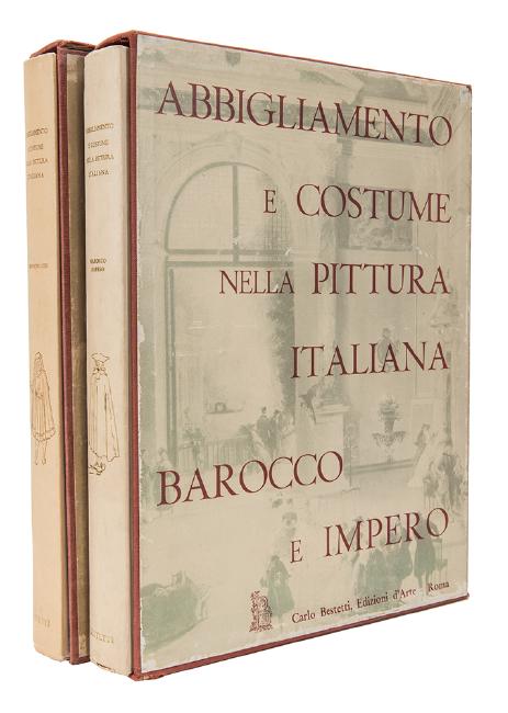 [Costume. Italian] Abbigliamento e costume nella pittura Italiana: Barocco e Impero. Renasciamento. Rome: Carlo Bestetti, 1964. Two volumes. Color plates throughout. Illustrated boards. Slipcases. 4to.