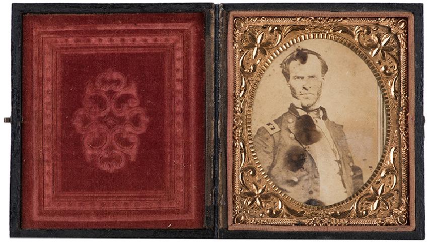 [Civil War] Sherman, William Tecumseh. Tintype Portrait of the General in Seated in Uniform. Housed in a velvet-line case with a gilt clasp.