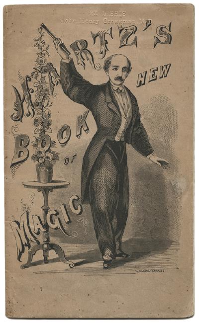 Hartz, Joseph Michael. Hartz’s New Book of Magic. New York: Press of Wynkoop & Hallenbeck, 1866. Lovely pictorial wrappers. 8vo. Blind stamp on front wrap, old signature on title, else very good. Scarce. Toole Stott 334.