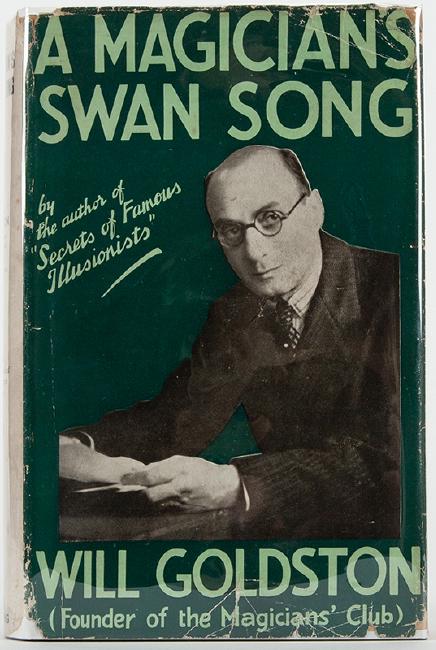 Goldston, Will. A Magician’s Swan Song. London: John Long, [1934]. First edition. Publisher’s cloth with scarce pictorial dust jacket. Plates. 8vo. Jacket chipped, book very good.