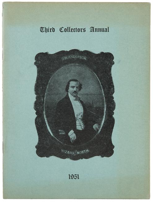 Findlay, J. B. The Collected Works of J.B. Findlay. Including International Guide to Posters & Playbills (1972), Conjurers Coins and Medals (1964; signed), The Travels of Testot (1965; author inscribed), Percy Naldrett: A Memoir (1969; signed), Magic Coins of Czechoslovakia (1969; inscribed and signed), Charles Dickens and His Magic (1962), Anderson and His Theatre (1967; inscribed and signed), Collectanea (1966), “Old Malabar” (1945), How’s Your Library? (1958; inscribed and signed), The Book of Magic! (1951), “Bookishly Yours” (1987; inscribed and signed), Magical Bibliographies (1953; by Victor Farrelli, appendix by Findlay), Collecting Memories (1955; by Wilford Hutchinson, compiled by Findlay); and Collectors Annual nos. one (1949; rare first edition), Second (1950), Third (1951), Fourth (1952), Fifth (1953), Sixth (1954), and Tenth (1959). Also with a file of correspondence, Christmas cards, price lists, Magic Collector’s Weekend brochures, and ephemera related to Findlay. Sizes and bindings vary; in two oversized 4to clam shell boxes.