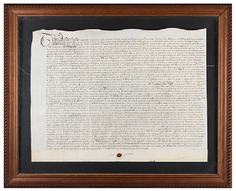 Framed Indenture, and Printed Prayer Book Leaf, 17th Century. A land transfer manuscript indenture on parchment, dated 7 November 1613, signed and sealed by Read more…