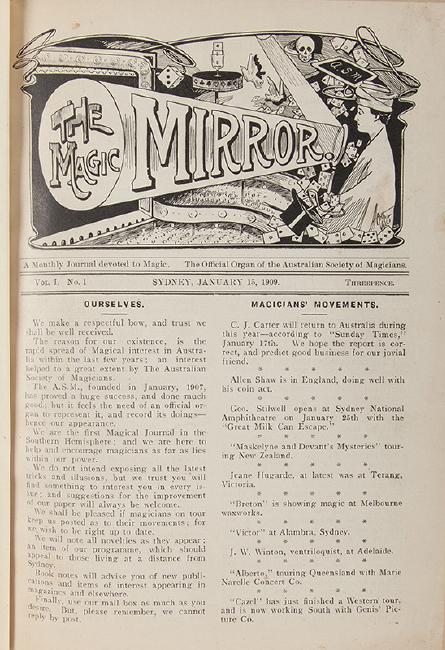 Magic Mirror. Charles Williams. V1 N1 (Jan. 1909) – V4 N9 (Oct. 1912). Partial file, 45 (of 56) issues, bound in green buckram volume. Ex-libris Dr. John Henry Grossman. Writing on FFEP, near fine condition for all copies. Scarce. Alfredson/Daily 3920.