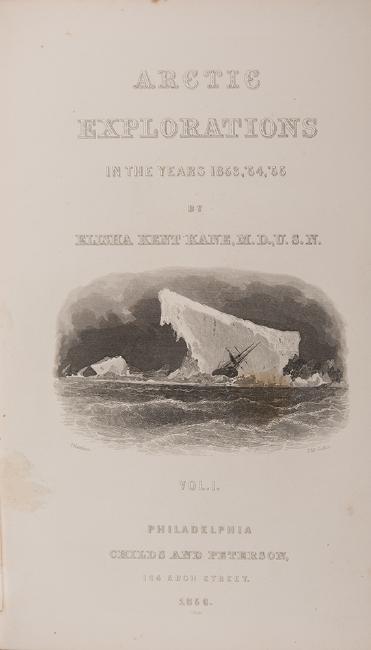 [Arctic] Kane, Elisha Kent. Arctic Explorations: The Second Grinnell Expedition in Search of Sir John Franklin. Philadelphia: Childs and Peterson, 1857. Two volumes. Full calf. Gilt-lettered spine labels. Marbled endpapers. 8vo. Rubbing to boards.