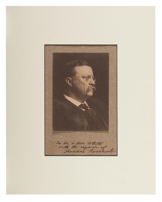 Roosevelt, Theodore. Signed photograph. By Gari Melcher affixed to mount. Boldly signed and inscribed on the mount by Roosevelt, "To Mr. and Mrs. White, with the regards of Theodore Roosevelt."