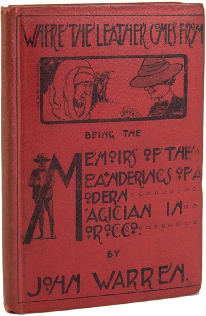 Warren, John. Where the Leather Comes From. London: R. Tomsett & Co., 1903. Publisher’s red pictorial boards, printed in black. Tipped-in correspondence of sale prices from Warren to a customer. With photographic plates. 8vo. Boards rubbed; very good.